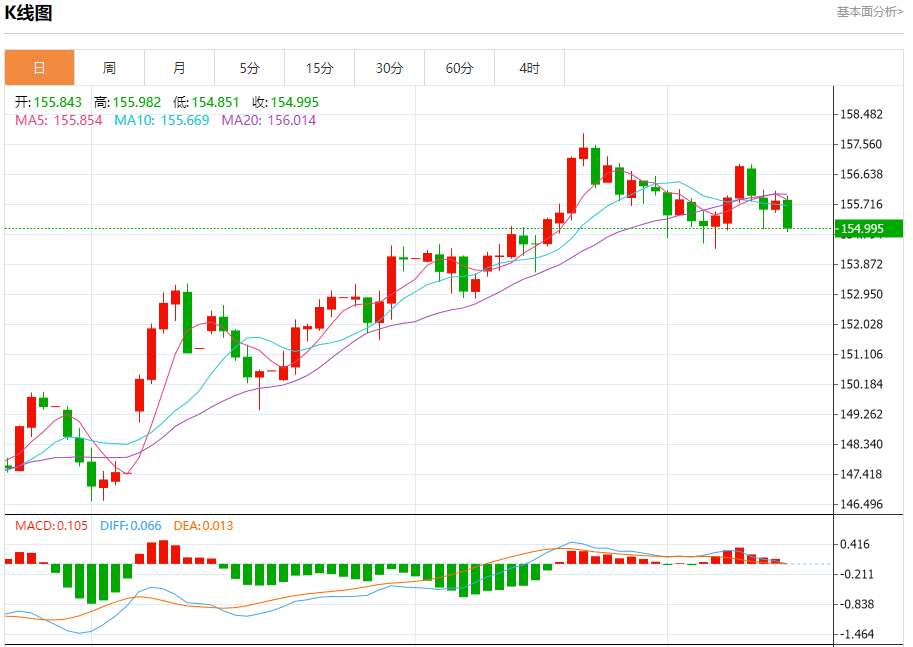 技术点评:只要155.40阻力位不被突破,向下跌破154.60位置的风险很高。