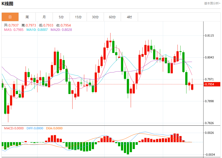 今日周一,澳元兑美元报0.6652,涨幅0.01%;美元兑加元报1.3765,跌幅0.03%;美元兑瑞郎报0.7956,跌幅0.08%。