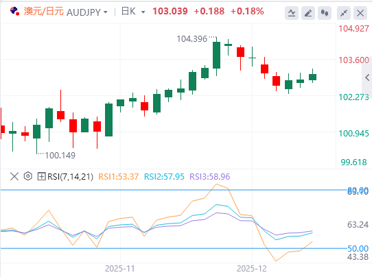 澳元兑日元交叉汇率也有所上涨,随着澳大利亚消费者通胀预期发布后投资者谨慎,澳元(AUD)获得支持。消费者通胀预期从11月的3个月低点4.5%升至12月4.7%,支持澳大利亚储备银行(RBA)的鹰派立场。