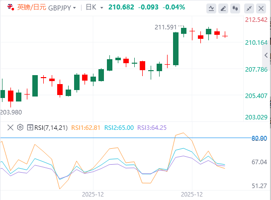 直接支撑位于210.05(12月24日低点),11月初低点的趋势线现为209.35。若确认跌破该水平,将使12月中旬约208.90的高点成为焦点。