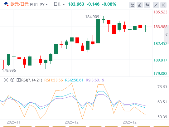 然而,欧洲央行(ECB)在12月的政策会议上维持利率不变,其展望显示进一步降息的紧迫性降低。这反过来可能为欧元提供一定支撑。欧洲央行行长克里斯蒂娜·拉加德指出,所有选项仍然摆在桌面上,12月会议上未讨论加息或降息,尽管一些经济学家预计利率将在2026年保持稳定。