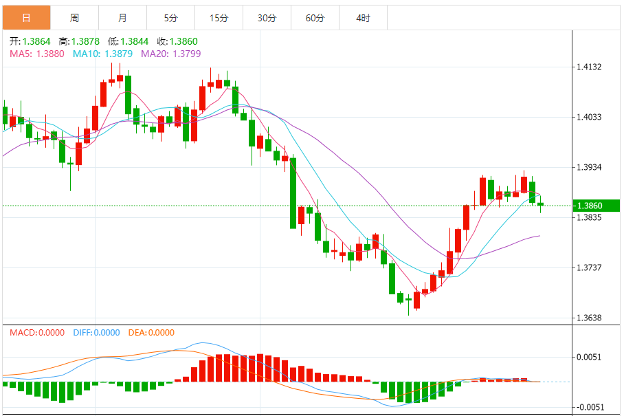 周二,美元/加元徘徊于1.3862下方,现交投于1.3859附近,跌幅0.04%。