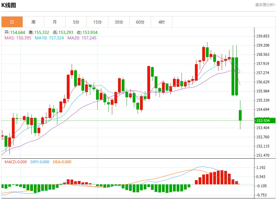 今日周一,欧元兑美元报1.1849,涨幅0.16%;英镑兑美元报1.3656,涨幅0.09%;美元兑日元报154.002,跌幅1.08%。