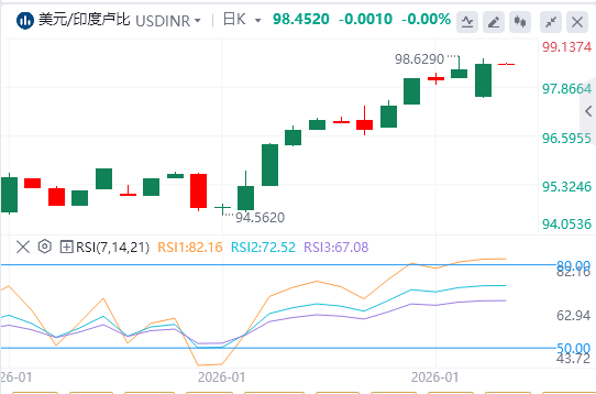 美元兑印度卢比大幅下跌,至写作时接近90.35。价格跌破20日指数移动平均线(EMA)91.0816,保持短期偏向软弱。20日均线已开始滚动,强化了修正基调。拉力赛的最高分可能在EMA上。