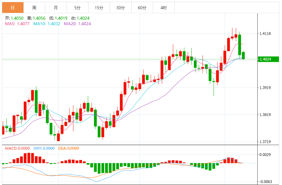 今日周一,澳元兑美元报0.6535,涨幅0.62%;美元兑加元报1.4014,跌幅0.23%;美元兑瑞郎报0.8054,涨幅0.01%。 澳元兑美元汇率分析 技术点评:RI技术指标向上运行。 阻力位:0.65950.65750.6555 支撑位:0.65050.64750.6455 美元兑加元汇率分析 技术点评:RI技术指标呈现进一
