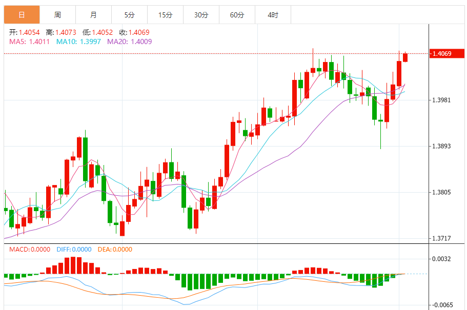今日周二,澳元兑美元报0.6494,跌幅0.66%;美元兑加元报1.4083,涨幅0.19%;美元兑瑞郎报0.8086,涨幅0.19%。 澳元兑美元汇率分析 技术点评:RI技术指标被其下行趋势线拖累。 阻力位:0.65400.65300.6520 支撑位:0.64800.64600.6445 美元兑加元汇率分析 技术点评:RI技术指