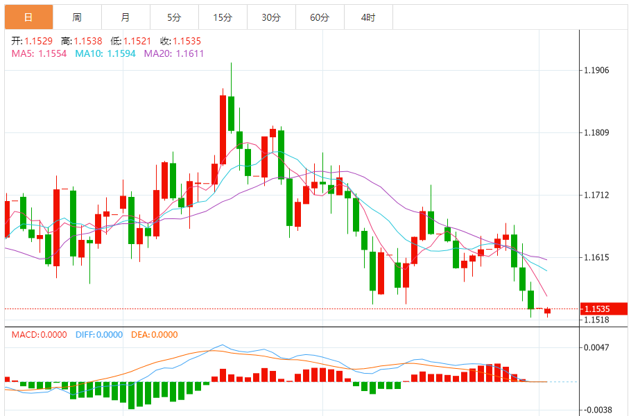 11月3日,欧元/美元周一欧洲时段早盘持稳,截至撰写本文时交投于1.1530,略高于当天早些时候触及的1.1520附近的三个月新低。在过去三个交易日抛售近1%之后,该货币对仍然脆弱,美元(UD)受到中美贸易协议和美联储(Fd)鹰派立场的提振。 由于日本银行假期使波动性保持低迷,主要外汇货币在亚洲时段保持相对不变。在欧