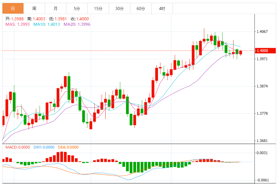 今日周二,澳元兑美元报0.6555,涨幅0.00%;美元兑加元报1.3999,涨幅0.06%;美元兑瑞郎报0.7958,涨幅0.05%。 澳元兑美元汇率分析 技术点评:RI技术指标看涨,有进一步向上趋势。 阻力位:0.66100.65900.6575 支撑位:0.65400.65250.6510 美元兑加元汇率分析 技术点评:RI技