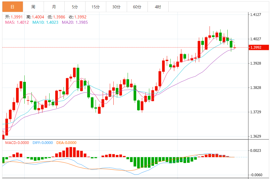 周四,美元/加元徘徊于1.3994下方,现交投于1.3992附近,跌幅0.01%。 市场基本面分析 加拿大央行日前发布季度企业展望调查报告及消费者调查报告。经济专家预测,此两项调查结果显示企业及消费者对经济信心仍然低迷,将促使加拿大央行于本月底即将召开的利率会议上降息25个基点,将基准利率从9月的2.5%进一