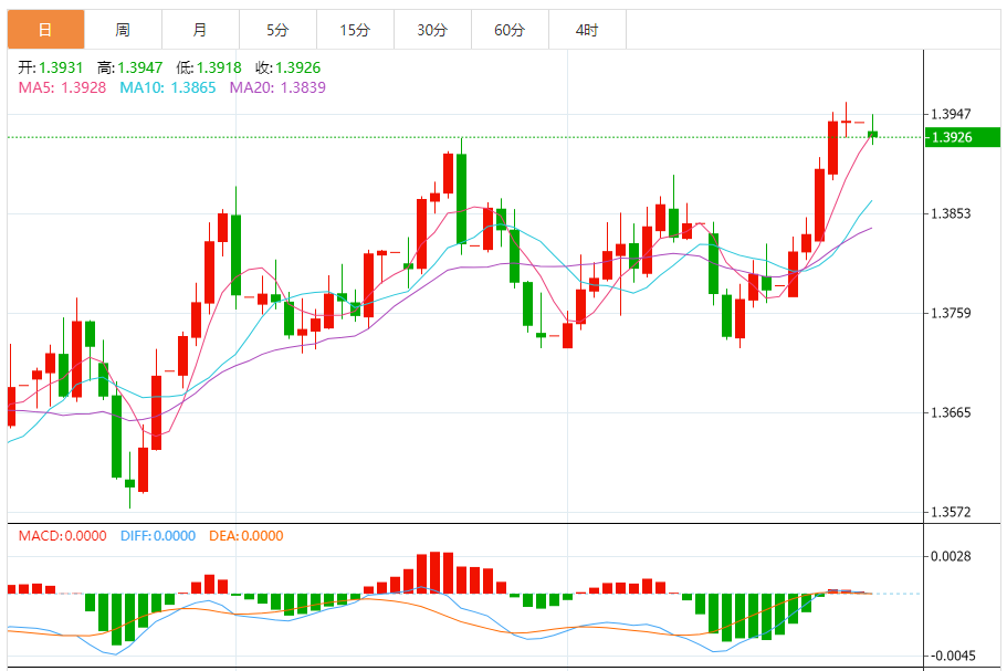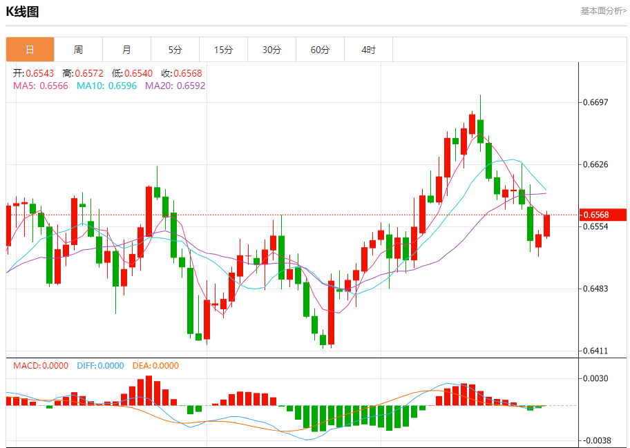 今日周一,澳元兑美元报0.6570,涨幅0.35%;美元兑加元报1.3929,跌幅0.10%;美元兑瑞郎报0.7964,跌幅0.22%。 澳元兑美元汇率分析 技术点评:即使我们不能排除持续调整的可能性,其时间长度上,应该是有限的。 阻力位:0.66100.65950.6580 支撑位:0.65500.65400.6525 美元兑加元汇