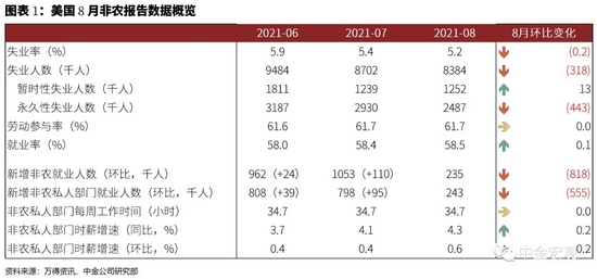 最后,8月非农数据也有一些积极信号。一是,6、7月新增就业分别上修2.4万人和11万人,使得这两个月的新增非农就业分别达到94万人和105万人。这说明在Delta疫情发生前劳动力市场复苏还是很好的。如果看3个月平均,6-8月月均新增就业75万人,已经不算低了。二是,8月失业率进一步下降至5.2%。考虑到疫情后因为劳动力市场摩擦,自然失业率可能上升,5.2%的失业率已经算比较低了。
