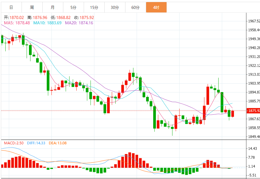 若黄金多头成功企稳于21SMA均线支撑位1874美元上方,那么金价的反弹之路将挑战看跌的50SMA均线1886美元。下一个重要阻力位于1900美元的整数水平,如破将试探上升楔形的上轨线1912美元。若持续性跌破上升楔形的支撑线1872美元将印证看跌延续形态。若跌破1860美元,金价将再度测试3个月低点1850美元。