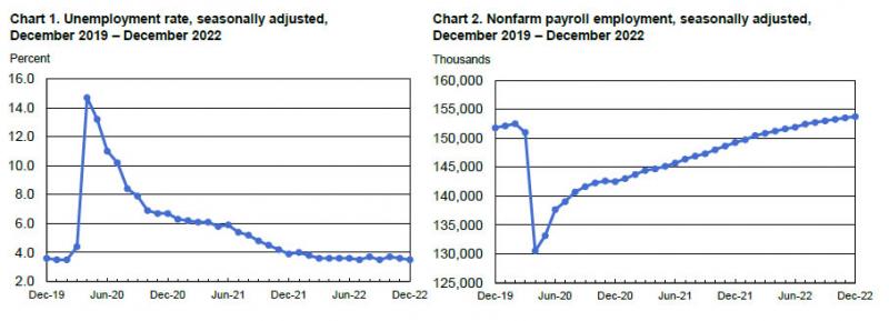 CNBC评美国12月季调后非农就业数据:美国12月份的就业增长有所放缓,但仍好于预期,表明在美联储试图放缓经济增长之际,劳动力市场依然强劲。当月非农就业人数增加22.3万人,高于市场预期的20万人,而失业率降至3.5%,比预期低0.2个百分点。工资增速低于预期,表明通胀压力可能正在减弱。平均时薪月率录得增长0.3%,年率增长4.6%。