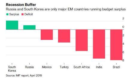 新兴市场的另一端是南非和土耳其等国家,如果全球经济衰退,这些国家的政策制定者没有多少回旋余地。