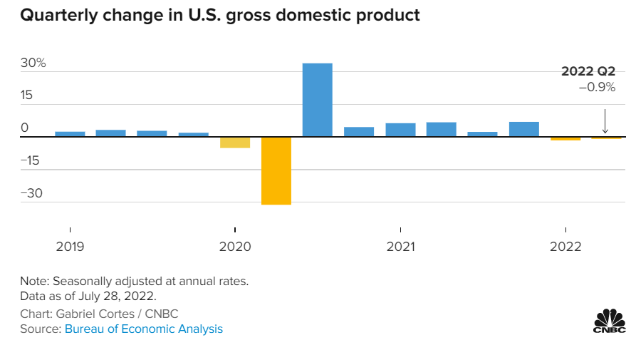 但是,连续第二个负GDP读数符合长期以来对衰退的基本看法,尽管下降的情况不寻常,而且无论NBER做出什么决定。GDP是衡量经济最广泛的指标,涵盖了这一时期生产的商品和服务的总水平。