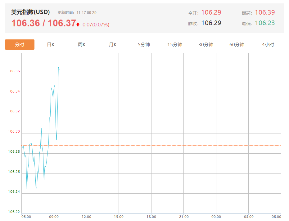 截至目前,美元指数交投于106.36附近,虽然周三美元小幅走弱,美元指数收跌0.24%至106.29,但下跌动能似乎已经有所减弱,美国零售销售数据和美联储官员鹰派讲话给美元提供支撑。