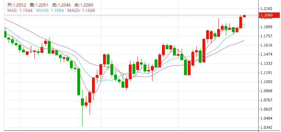 截至发稿,英镑兑美元报价1.2081,英镑周三大幅走高,兑美元连续第二天上涨,此前英国经济活动初步数据好于预期,尽管仍显示经济正在萎缩。英镑收盘报1.2054,涨幅约1.45%,盘中最高触及1.2080,为8月19日以来新高。三菱日联金融集团(MUFG)驻伦敦的高级汇市分析师Lee Hardman说:“英镑兑美元测试1.20已经有一段时间了,突破后给市场开了上行的绿灯。从基本面来看,这更像是在美国数据疲软和美国PMI弱于欧洲的背景下,美元出现的更广泛的抛售。”
