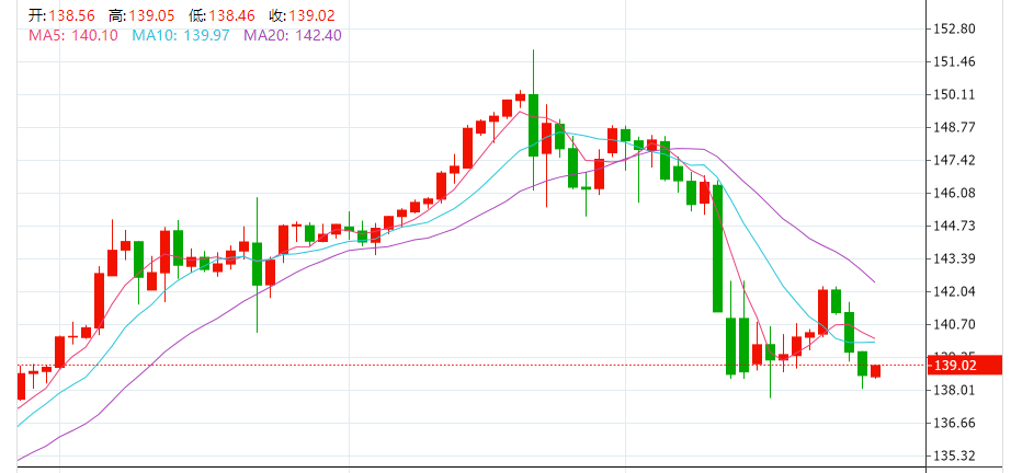 截至目前,美元兑日元刚刚触及139.00关口,最新报139.00。美元兑日元紧跟美元走势,周四美元兑日元下跌0.68%,为连续第三个交易日下跌,最低触及138.04,11月15日触及的近三个月低点支撑在137.66附近。