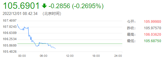 截至目前,美元指数交投于105.6901附近,因三季度GDP数据上修,周三美元指数一度创一周高点至107.20,但在美联储主席鲍威尔讲话后转跌,收报106.00,跌幅约0.76%。此前美联储主席鲍威尔表示,美联储可能“最快在12月”放慢加息步伐,这使得美元指数势录得2010年以来最差月度表现。