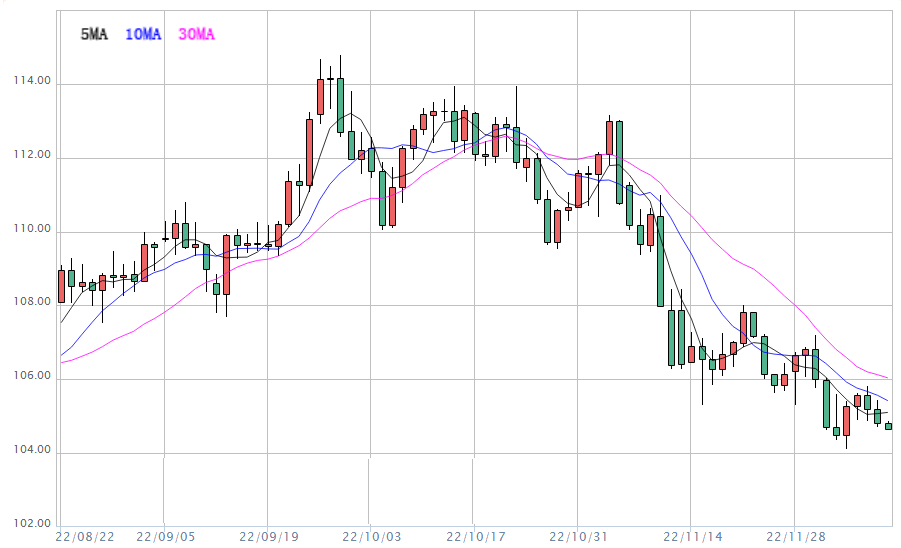 截至目前,美元指数窄幅震荡,目前交投于104.85附近;周四美元指数下跌0.37%,失守5日均线,使得汇价跌至所有均线下方,均线接近空头排列,因对美联储将放缓加息步伐的预期持续打压美元,投资者需要提防美元的进一步下行风险;下周将迎来美国11月份通胀数据和美联储利率决议,市场交投相对谨慎,因投资者需要权衡美联储的政策前景和利率上升导致经济衰退的可能性。