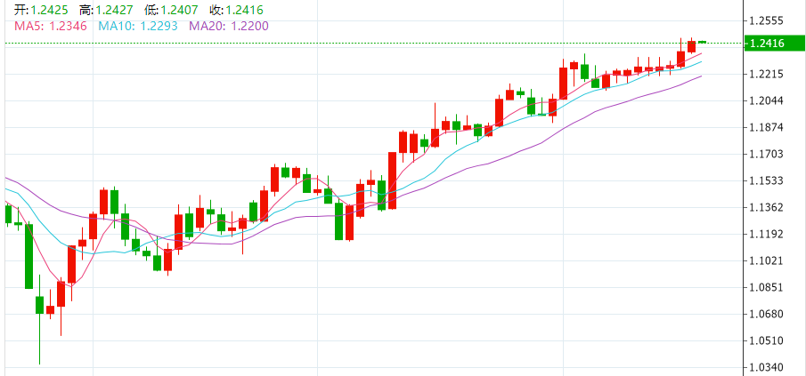 截至发稿,英镑兑美元报价1.2416,英镑兑美元尾盘上涨0.54%,报1.2429美元,英国债务管理局(DMO)将在12月20日的拍卖会上出售32.5亿英镑,利率为0.25%的2025年到期的国债。