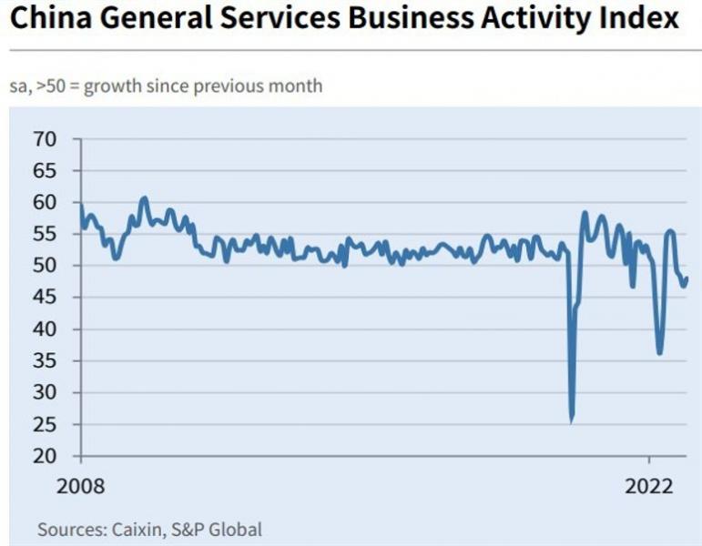中国的新型冠状病毒肺炎-19激增正在给中国经济带来压力。服务有所改善,但仍在收缩。