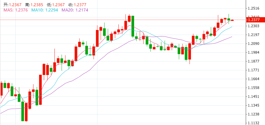 截至发稿,英镑兑美元报价1.2377,英镑兑美元周一从亚洲时段创下的七个月高点回落,上周有数据显示英国经济表现好于预期,这也推动了对更多加息的预期。英镑下跌0.25%,至1.23685美元。