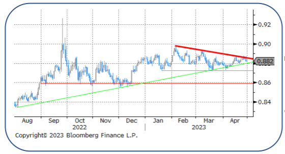 通常对风险敏感的英镑在银行业动荡中表现出惊人的弹性。英国央行加息25个基点。下一步走高仍然是有条件的,但无论如何,价格已经反映出来了。英国央行内部对未来走向的分歧,与欧洲央行目前的鹰派言论形成了鲜明对比。这给已经疲软的结构性英镑(增长前景疲软、双赤字、长期脱欧后果雪上加霜……)。