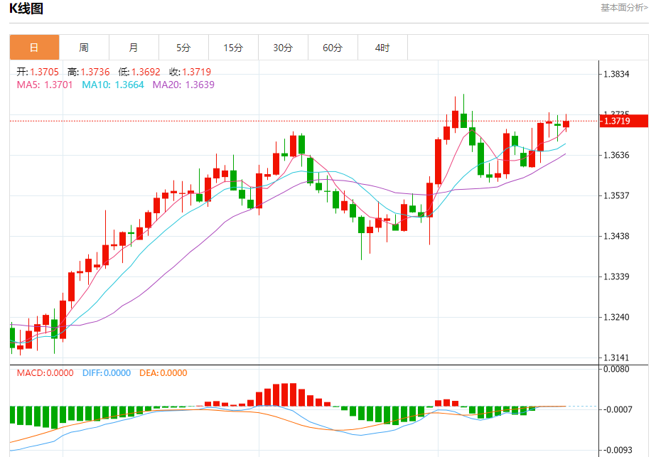 截至目前,美元/加元上涨0.07%,报1.3721。