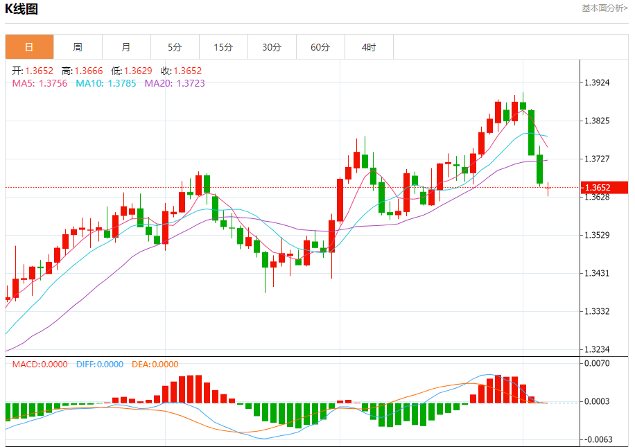 截至目前,美元/加元下跌0.09%,报1.3654。