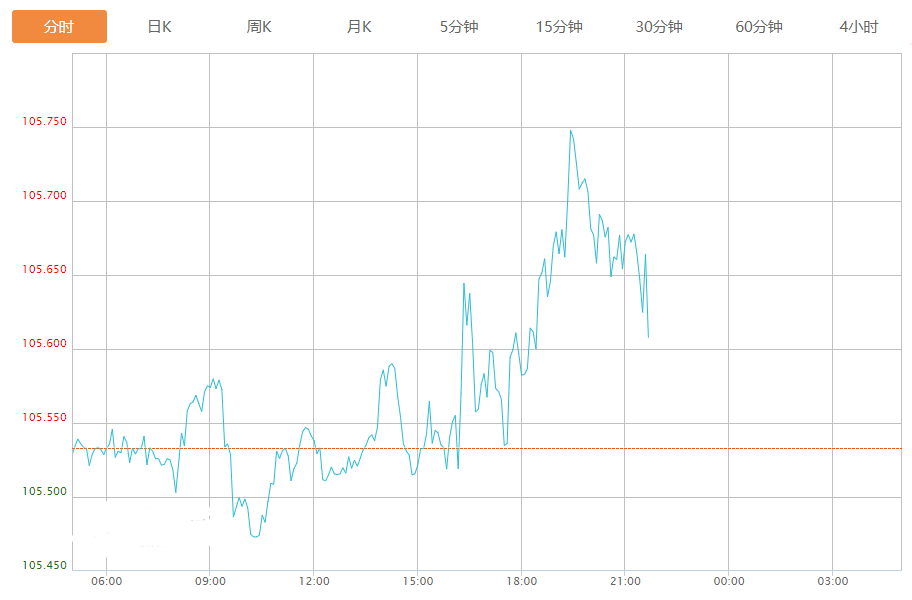 截至目前,美元指数上涨0.07%,报105.602。