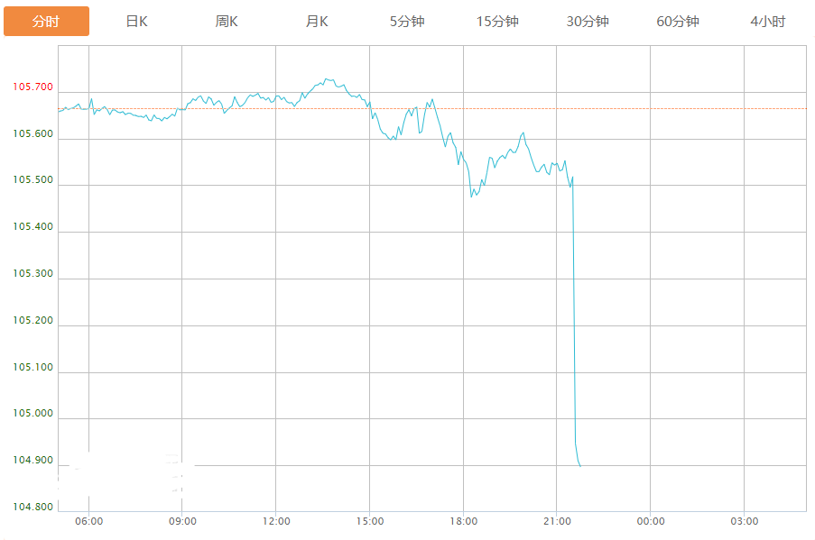 截至目前,美元指数下跌0.70%,报104.920。