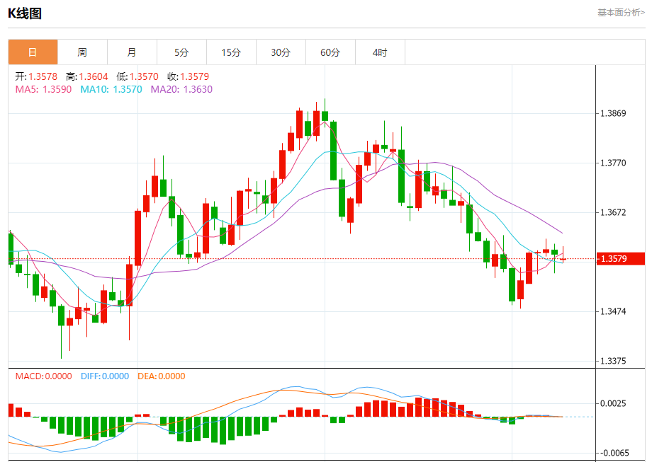 截至目前,美元/加元下跌0.07%,报1.3579。