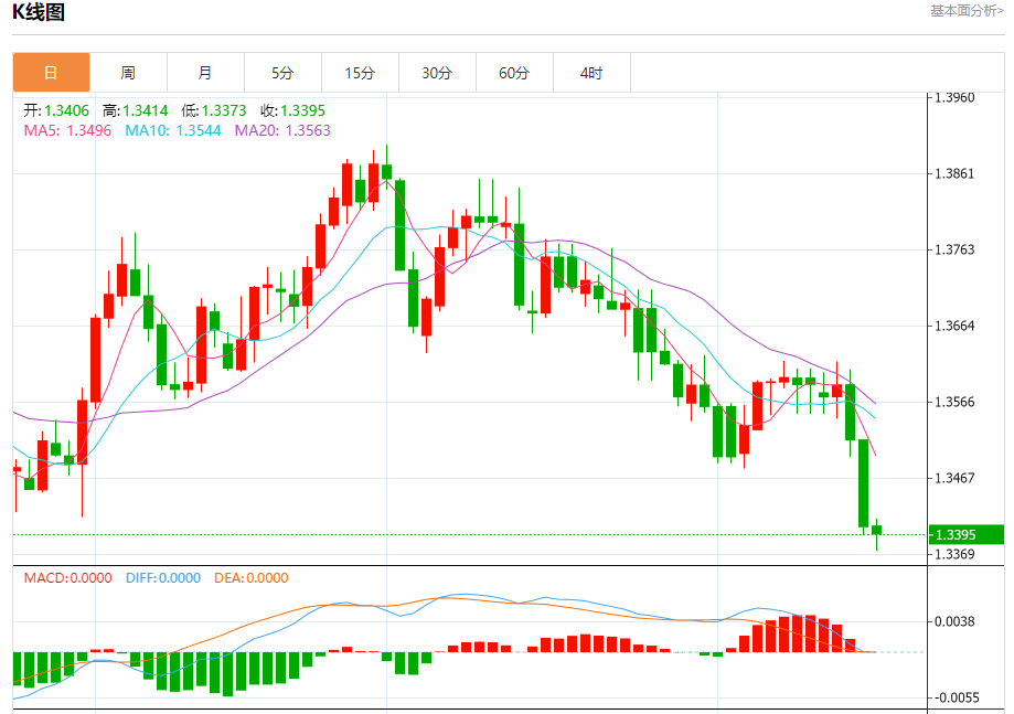 截至目前,美元/加元下跌0.07%,报1.3397。