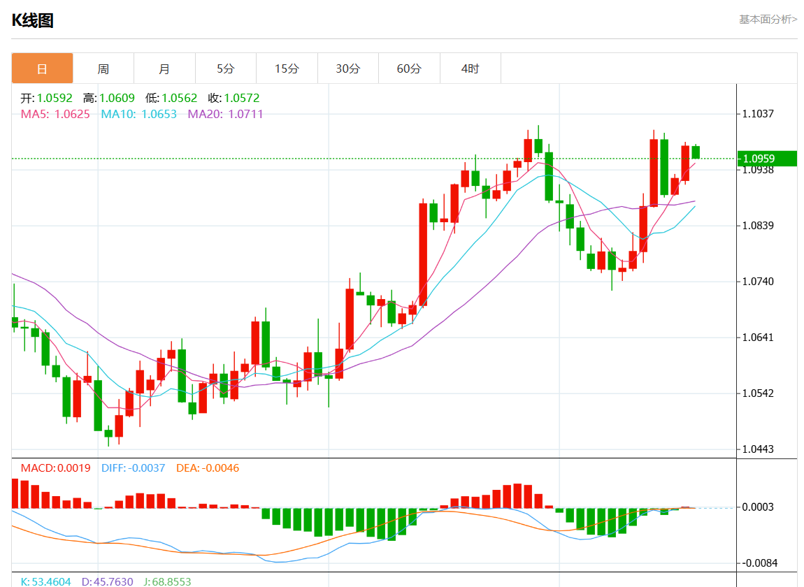 周三欧市盘中,欧元/美元最新报1.0956,日图跌0.22%.