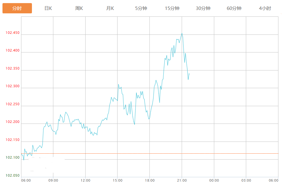 截至目前,美元指数上涨0.22%,报102.339。