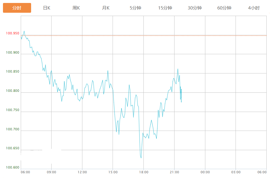 截至目前,美元指数下跌0.16%,报100.785。