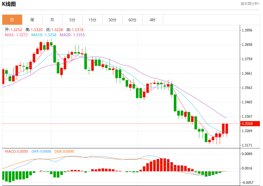 截至目前,美元/加元上涨0.51%,报1.3320。