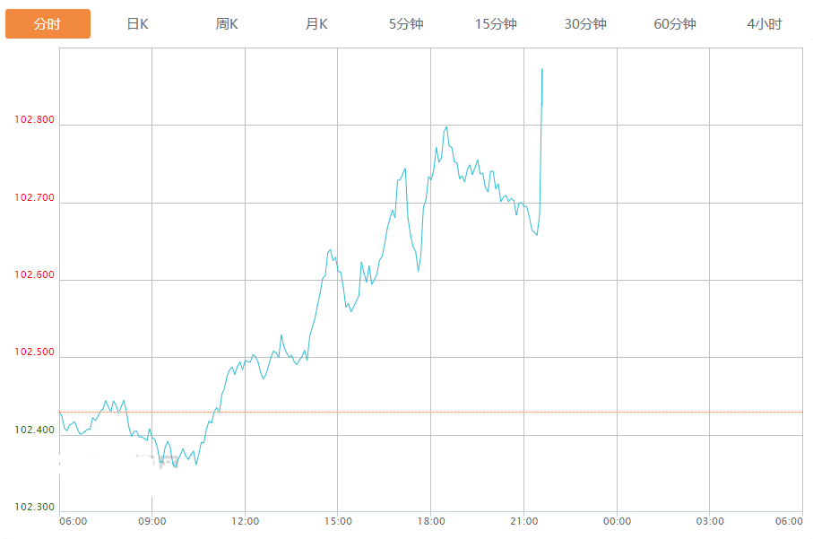 截至目前,美元指数上涨0.43%,报102.871。