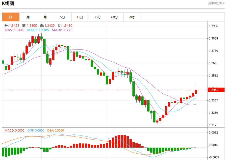 截至目前,美元/加元上涨0.22%,报1.3456。