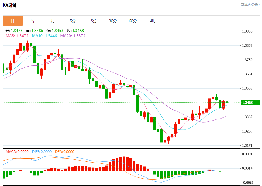 截至目前,美元/加元下跌0.07%,报1.3469。