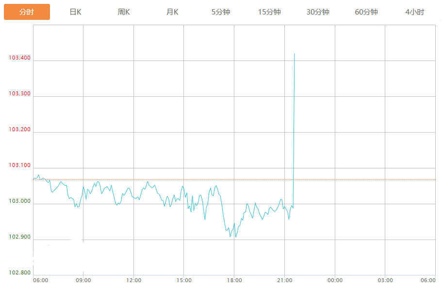 截至目前,美元指数上涨0.34%,报103.413。