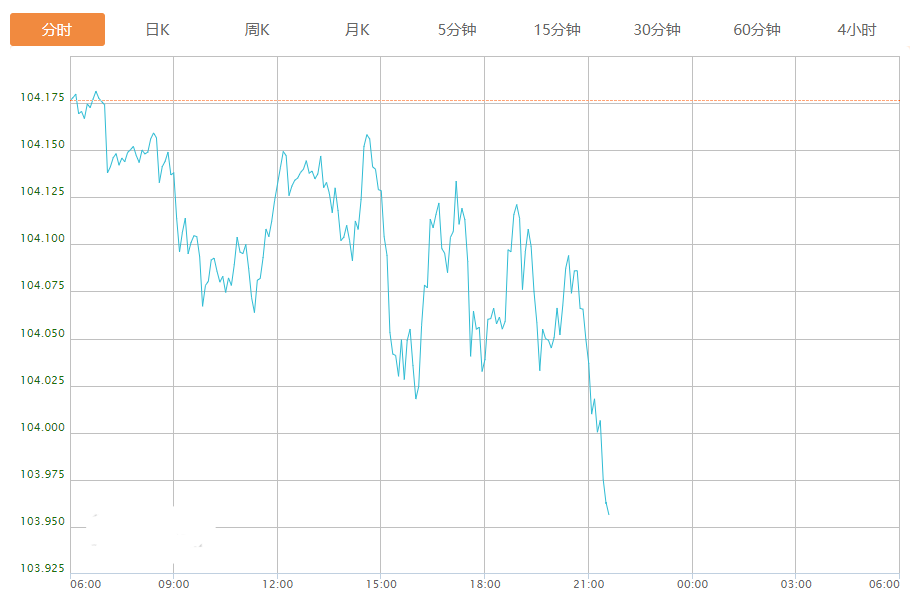 截至目前,美元指数下跌0.20%,报103.971。