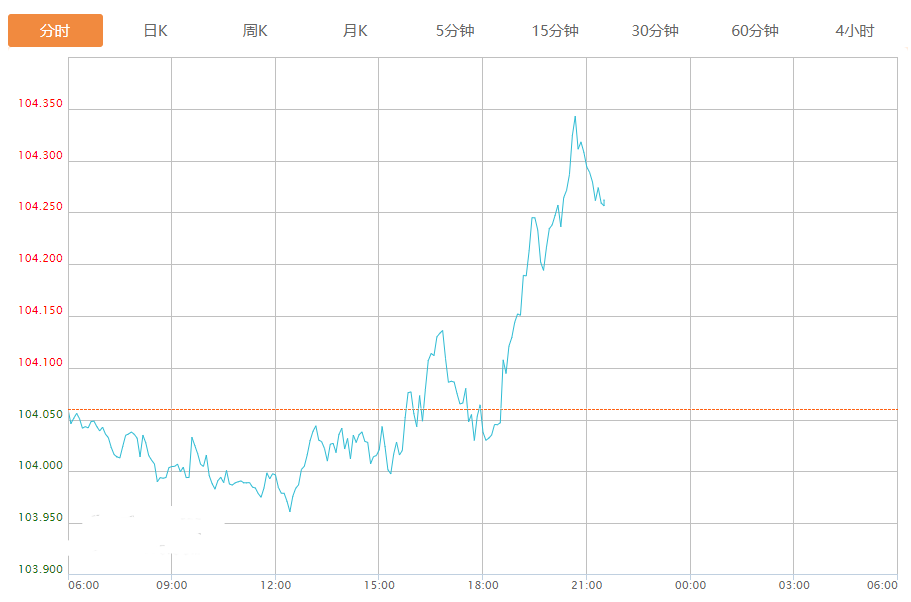 截至目前,美元指数上涨0.19%,报104.257。