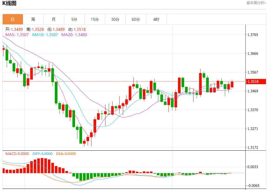 截至目前,美元/加元上涨0.09%,报1.3520。