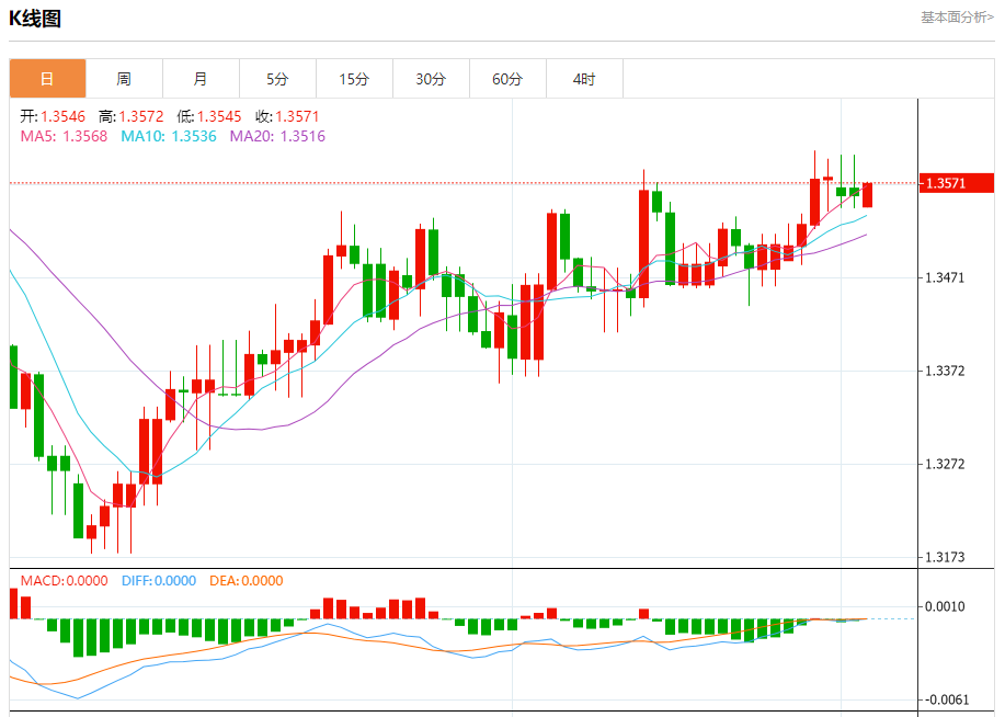 截至目前,美元/加元上涨0.10%,报1.3574。