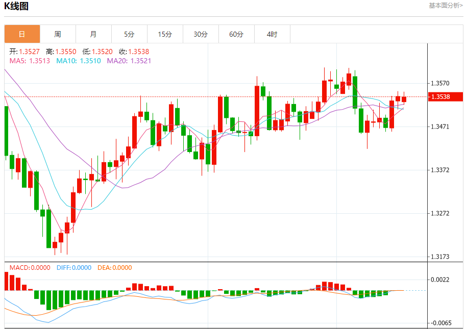截至目前,美元/加元下跌0.01%,报1.3540。