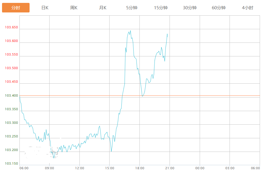 截至目前,美元指数上涨0.22%,报103.631。