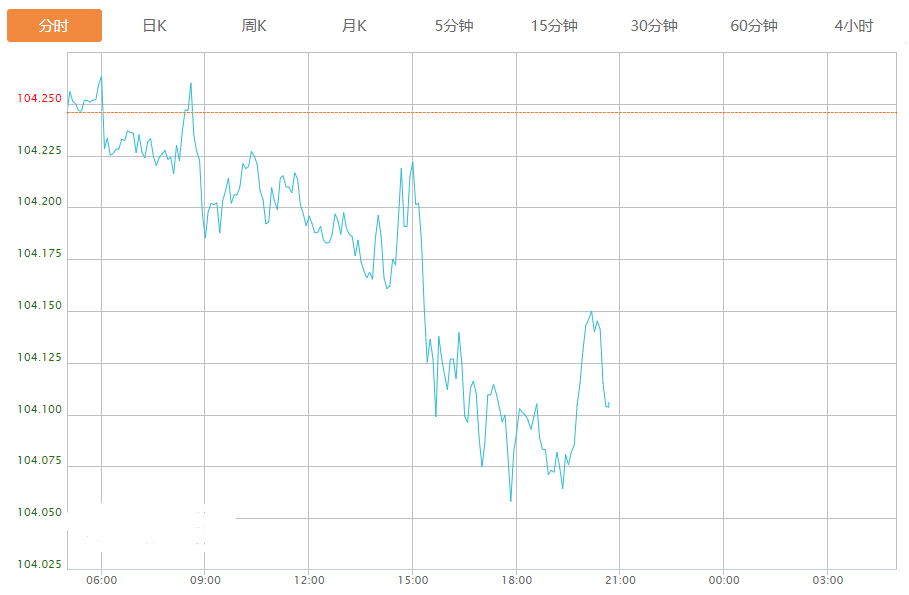 截至目前,美元指数下跌0.13%,报104.108。