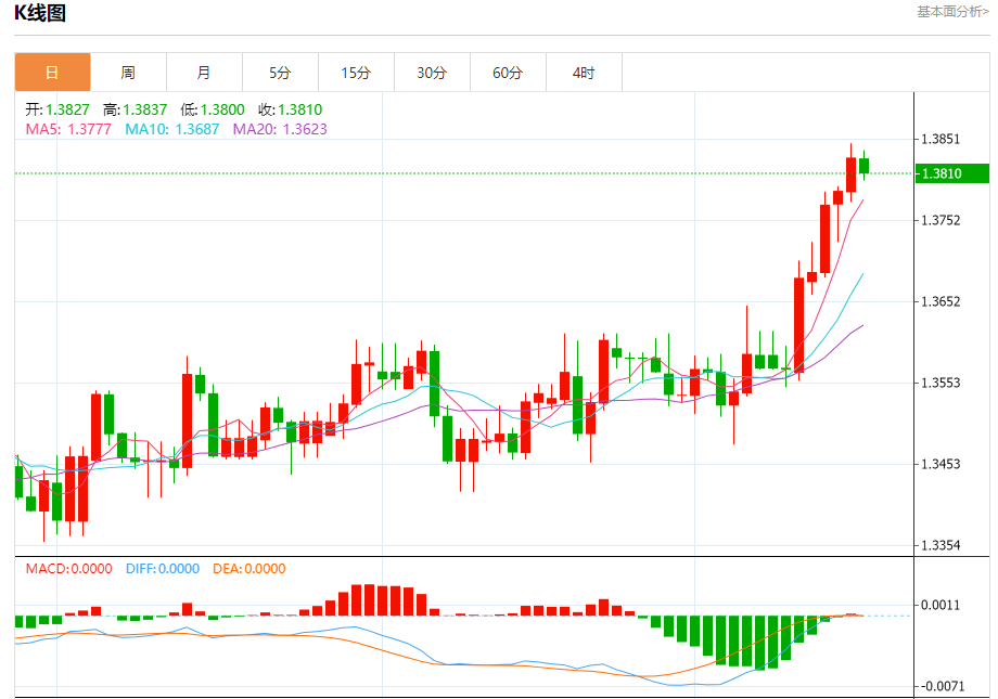截至目前,美元/加元下跌0.12%,报1.3813。